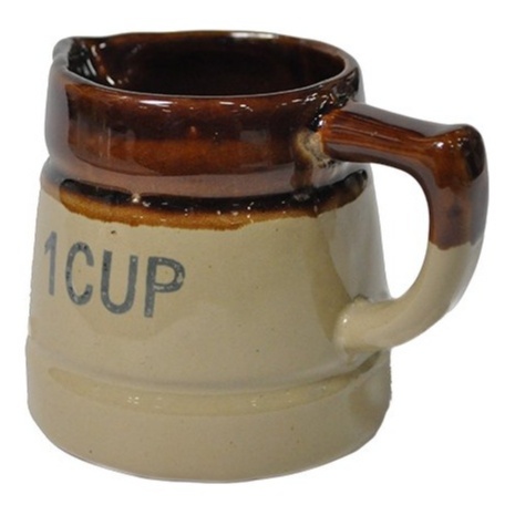 1 cup pottery beige with brown edge. Size: 5"Dx4"H