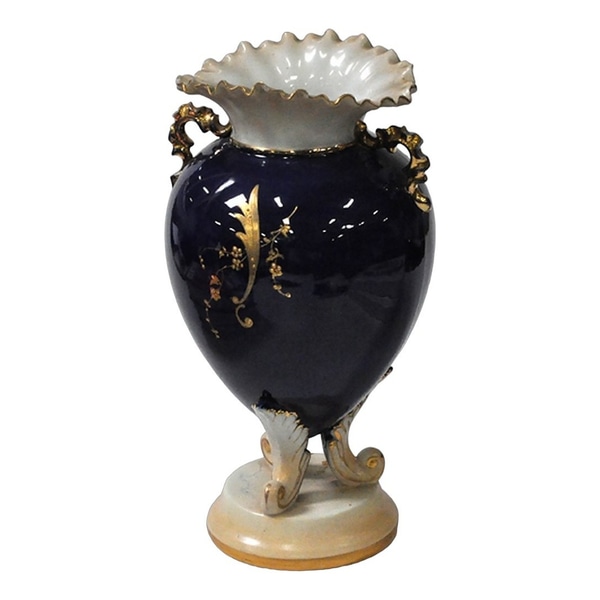 china pear shaped navy blue, white interior, blue & white picture design of small girl, gold detail. Size: 10"h