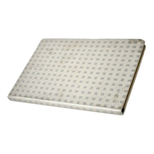 cream textured hardcover with black elastic tie. Size: 9"HX6"W