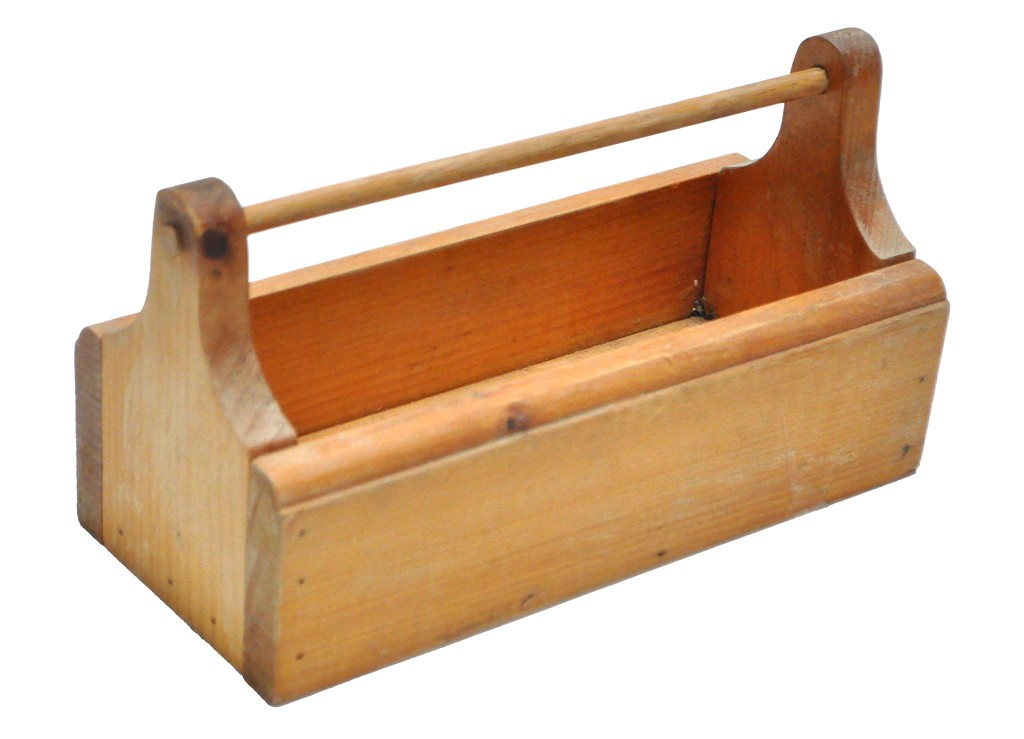 wood, hand crafted, rectangle shape with top handle, tool numbered separately