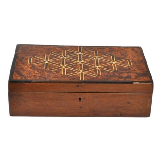 burl wood with octagonal shape design on hinged lid, size: 11" x 7" x 4" H