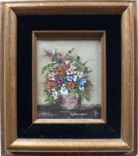Cleared Painting, canvas, Oil Still-Floral Bouquet in Beige Vase