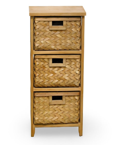 honey wood with 3 sliding drawers, woven wood, size: 16" W x 9" L x 30" H
