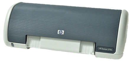 printer; compact, gray with blue ribbed top HP 3745 Deskjet