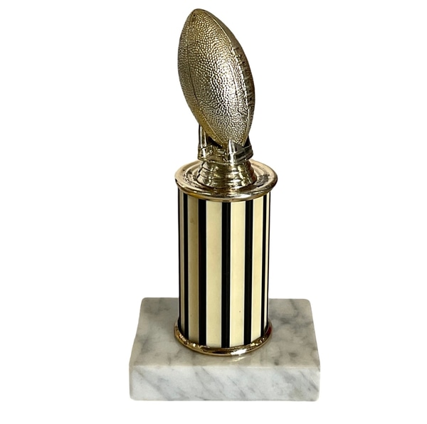 Football Trophy; Gold ball on ivory & black pillar,