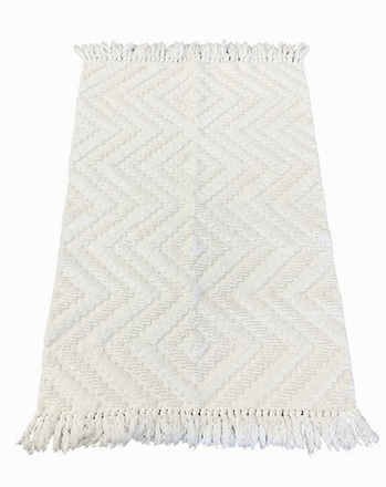 Bath Rug; cotton, white, raised diamond & zig zag lines with