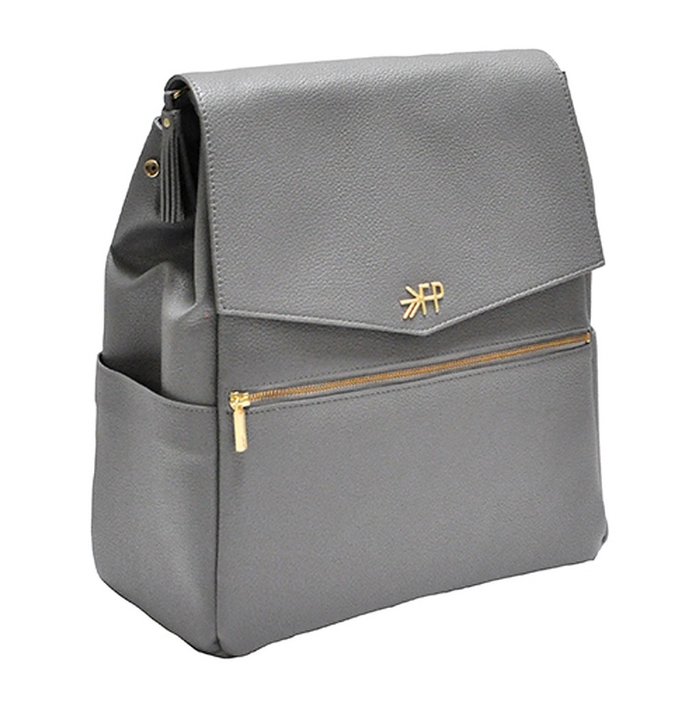 faux leather, gray, backpack, gold hardware, matching changing pad. Size: 15" x 13" x 17"H