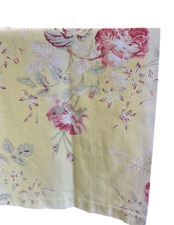 Valence, cotton yellow with red floral and white dotted design, wide pocket rod