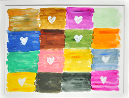 Cleared Painting on Paper; Watercolor, Hearts in Squares