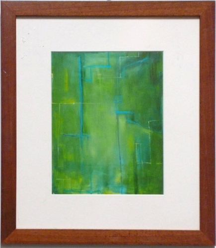 Cleared Painting on Paper; Acrylic, Green w/ Blue Lines