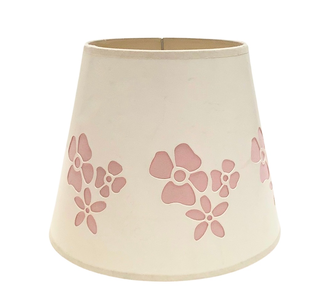 Lampshade; paper white with pink cut out flowers, tapered drum