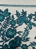 Deep teal blue with shiny turquoise accents, thin tulle fabric, floral embroidery