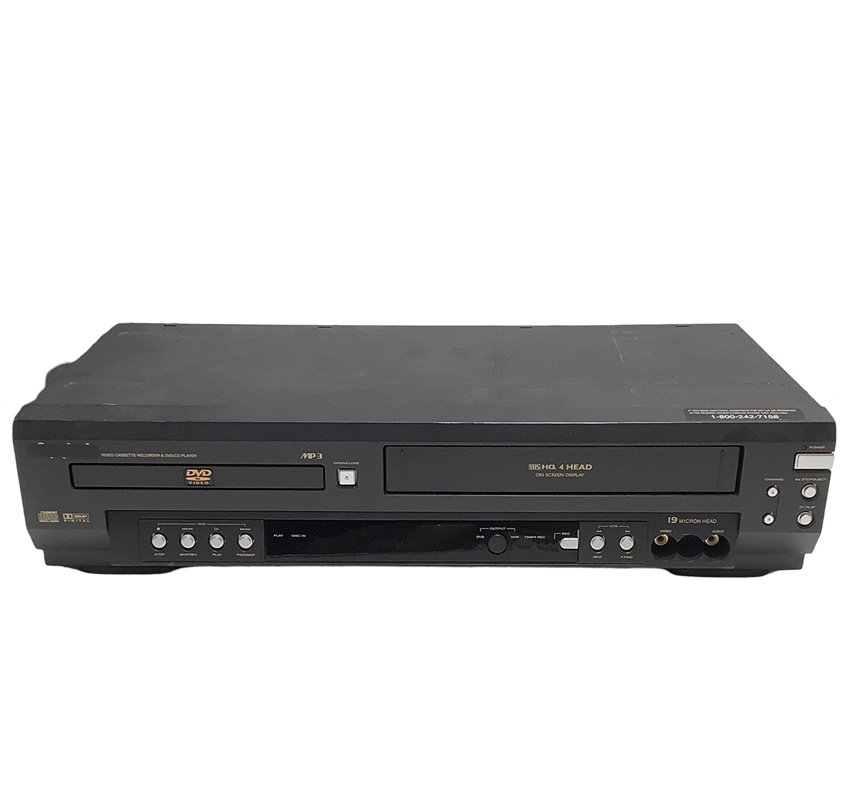 DVD/VCR Player; Black, Digital screen, Silver buttons,