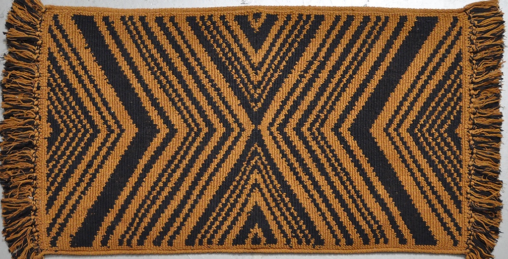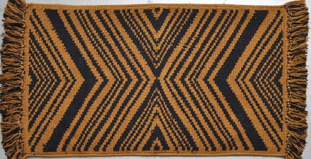 tawny brown & black zig zag design design, finished knotted fringe edge