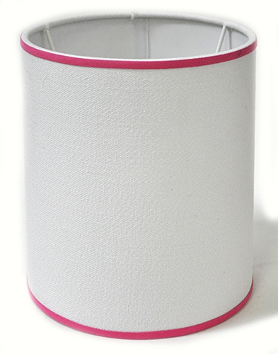 Lamp Shade; cotton white with pink striped edge, barrel shape