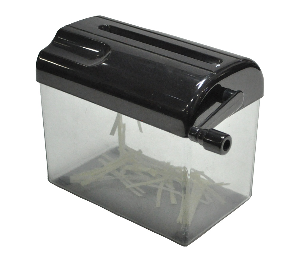 plastic, black tint glossy solid black lid, hand operated side handle - vlu. Size: 7"x4"x6"H