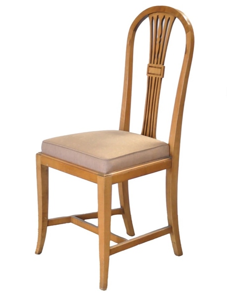 Chair, Straight; vintage honey colored wood, upholstered seat,