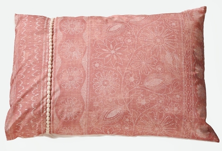 terracotta & blush floral design, yarn pom-pom trim, solid back
