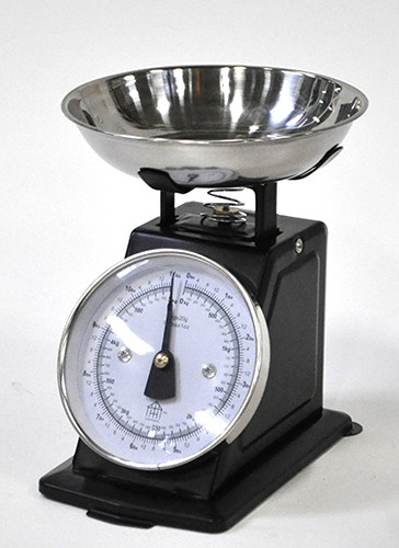 Kitchen Scale, black enamel base, glass face,