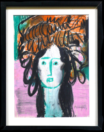 Cleared Drawing Pastel, Woman with Orange Black Hat