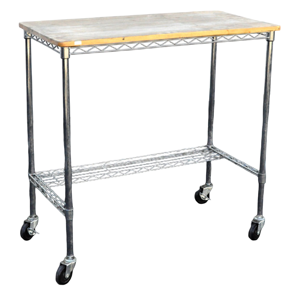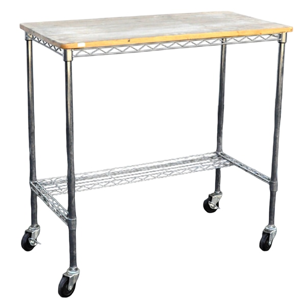 aged butcher block top, 1/4 wire shelf below (Metro system), size: 37" x 19" x 37" H