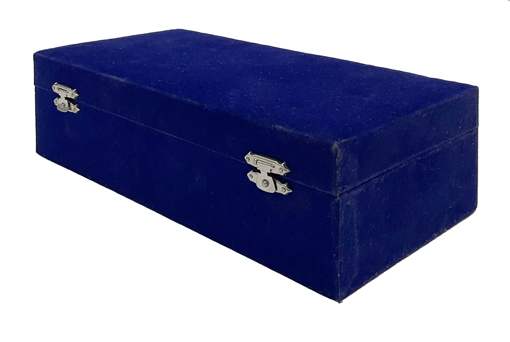 Jewelry box: Blue velvet exterior, dark blue velvet interior