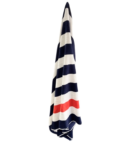 Beach Towel; 100% Cotton, Navy Blue, red & white striped,