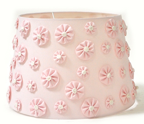 Lamp Shade; deco flowery pink cotton shade, tapered drum