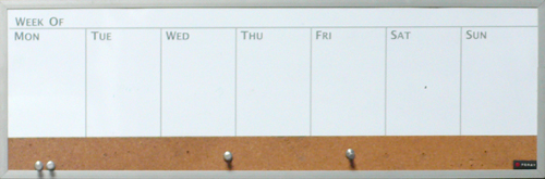 cork board of a week, silver plastic frame, size: 23" x 8"