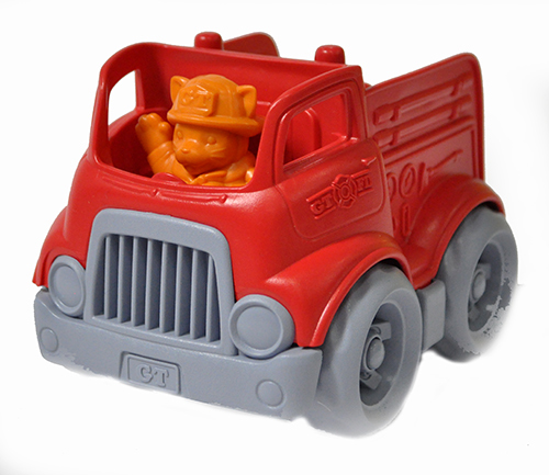 toy; CLEARED, Fire Engine, red with gray bumper & wheels, no water canon, 1 orange fire fighter cat