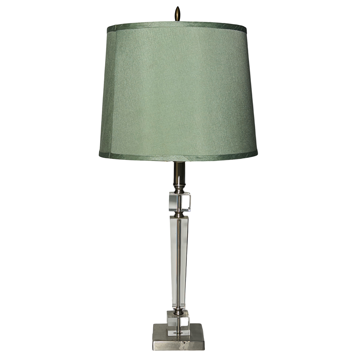 Table Lamp Base; crystal cut square with brushed chrome detail