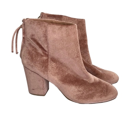 Ankle Boots; pair, mauve velvet, chunky heel,