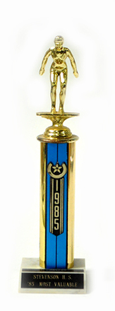 marble pedestal, etched plaque '85 most, size: 3" x 3" x 11" H