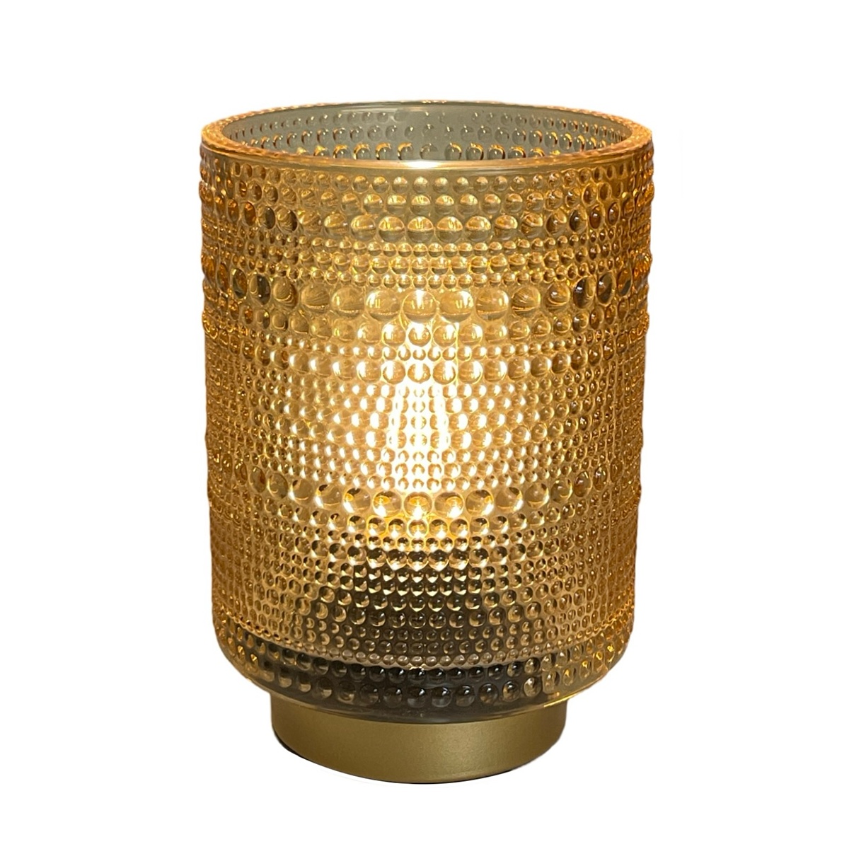 Table Lamp; Amber glass with raised detail, cordless LED light,