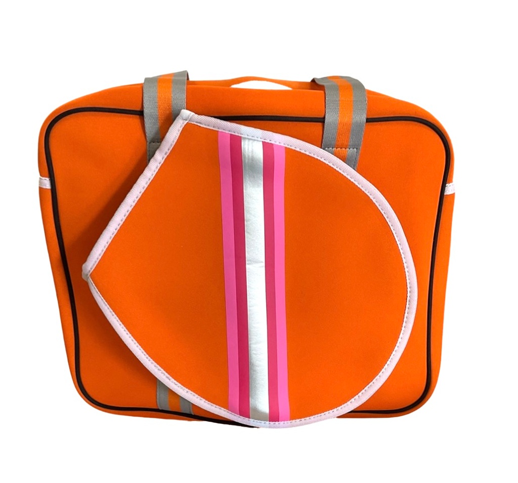 Pickeball Racket Bag; Orange neoprene, grey striped trim