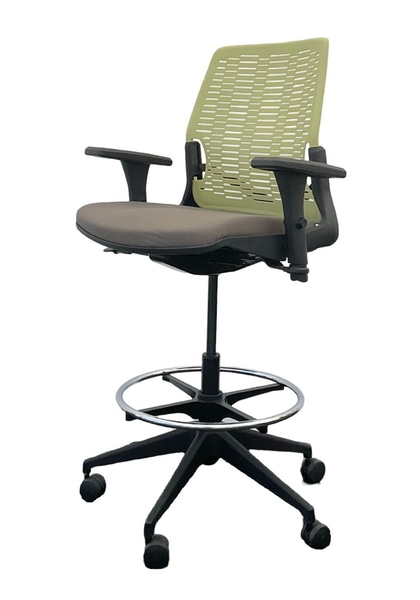 Stool, Dark Grey, Sage Green slotted back, taupe cushion