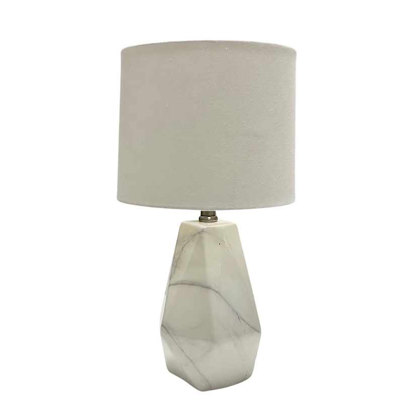 Table Lamp Base, White and Black Marble; Faceted ceramic