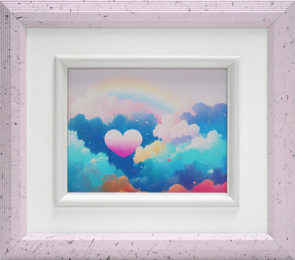 Cleared print on paper; Heart and Rainbow in the Clouds