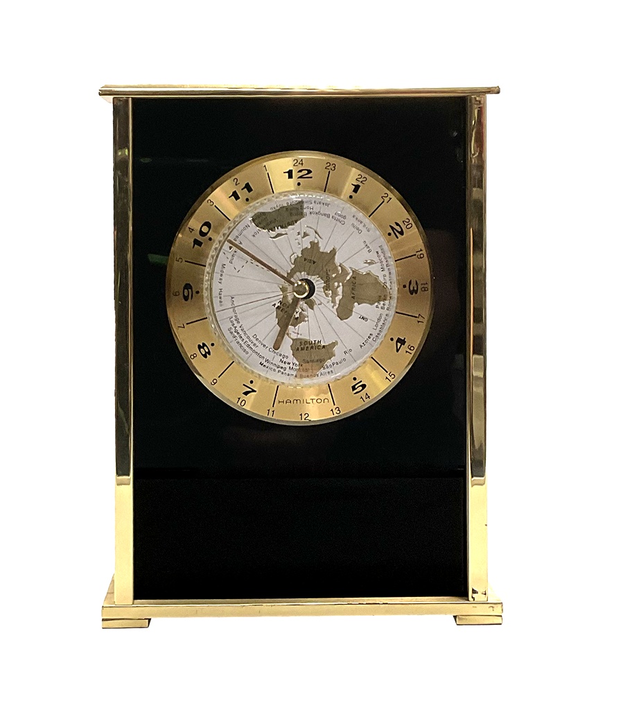 panel, inside gold housing, Arabic numeral 12/24 hours