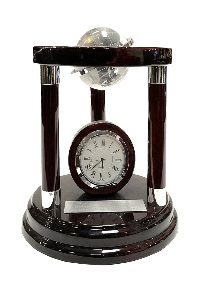 Desktop Clock Award: Analog clock on faux wood base,