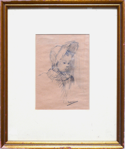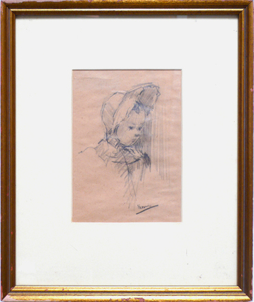 Cleared Drawing, Baby with Bonnet in pencil