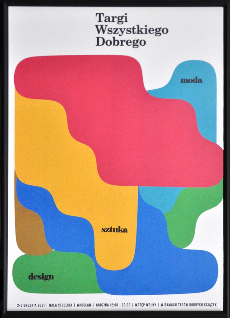 red, gold, blue, brown shapes, plexiglass, simple black metal frame