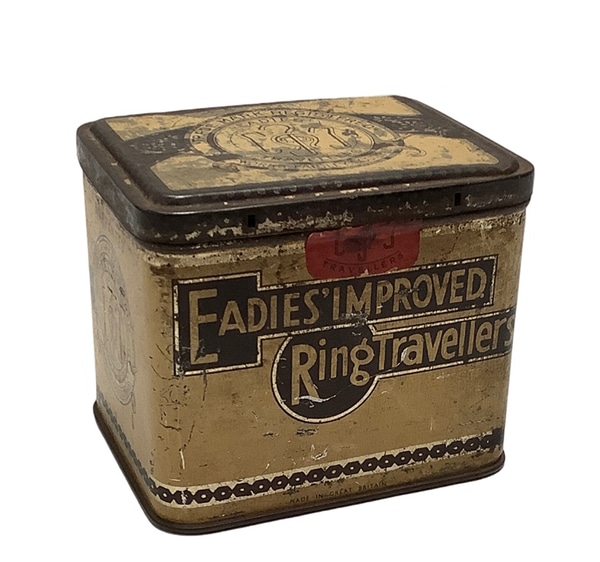 Tin Box; Vintage, Yellow, Eadie's Improved Ring Travelers