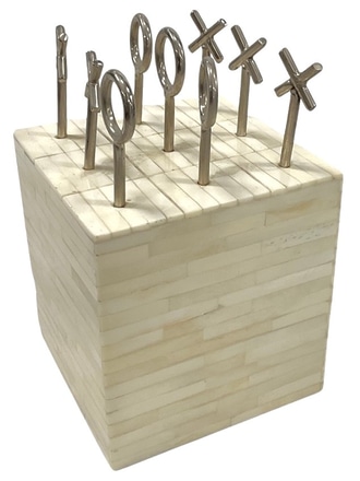 Desk Toy; Tic-Tac-Toe, steel game pieces on ivory mosaic cube,