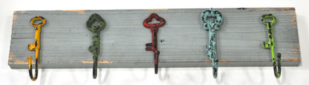 5 painted key - shaped hooks