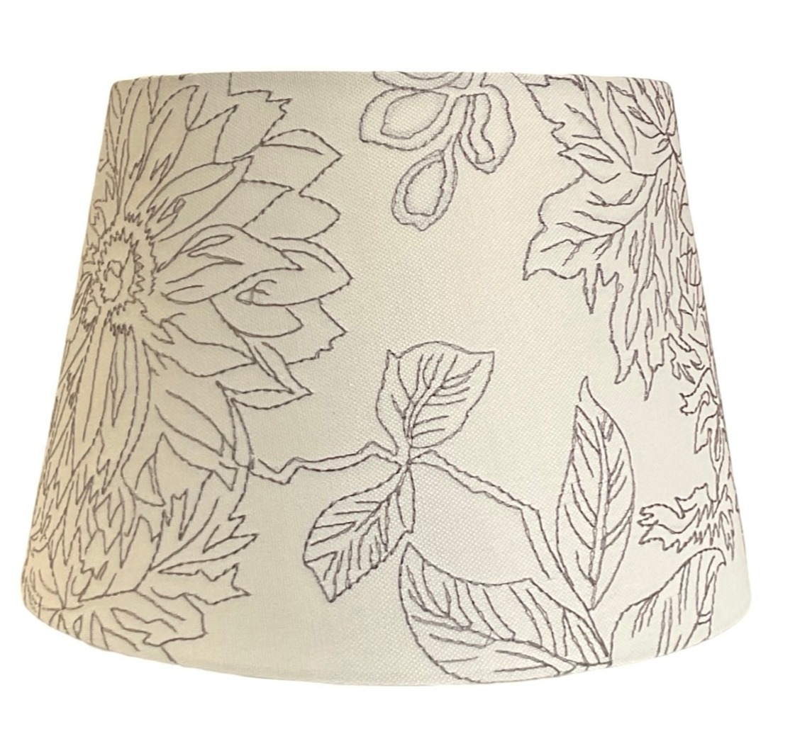 Lamp Shade; Cotton, cream with black floral Toile Stitch,