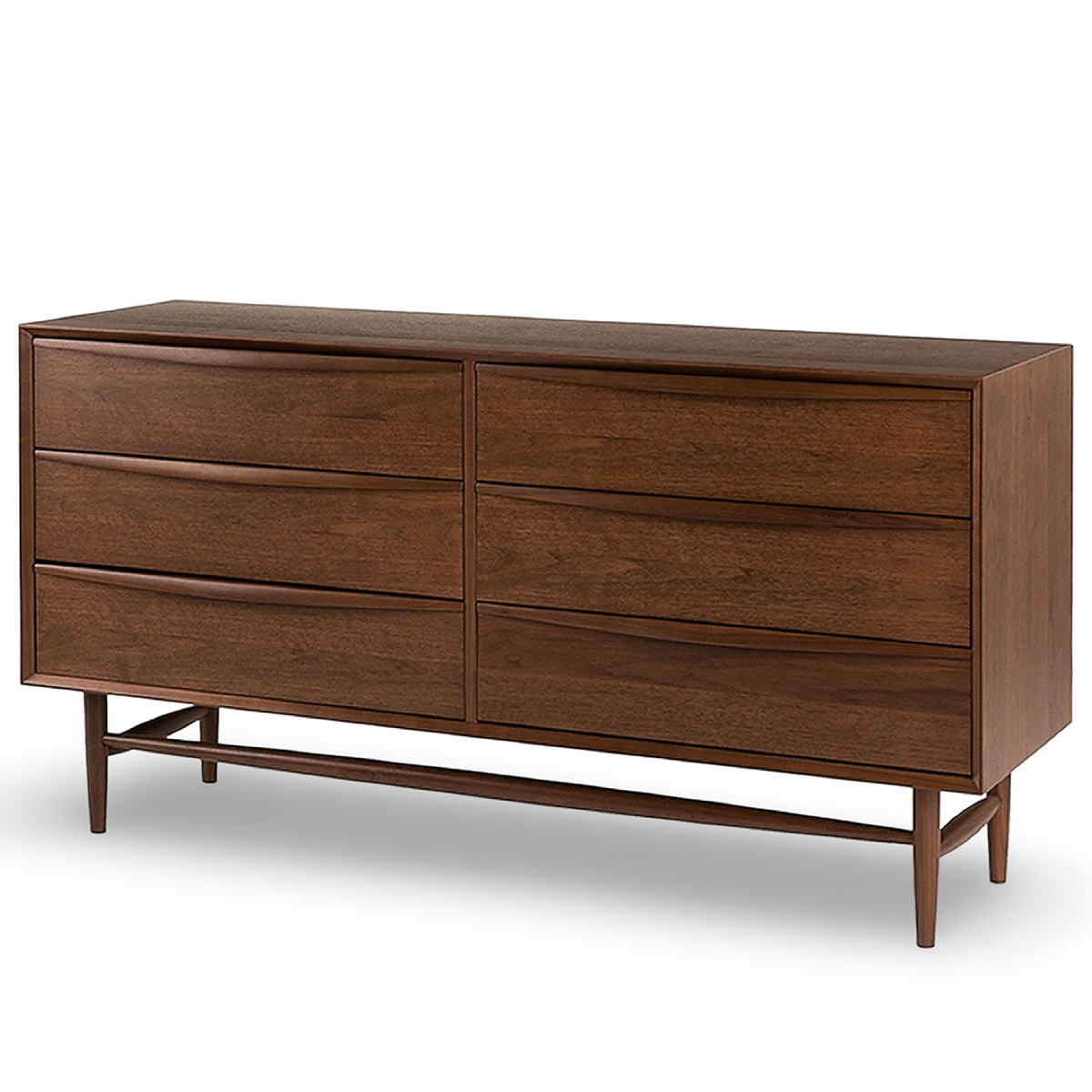 Dresser; walnut, six drawer with sold wood carved handles,