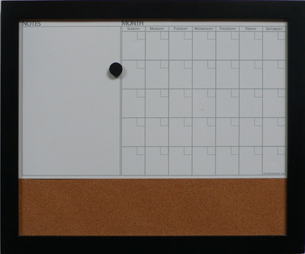 calendar dry erase board, magnet, and cork board, black frame, size: 23" x 18"