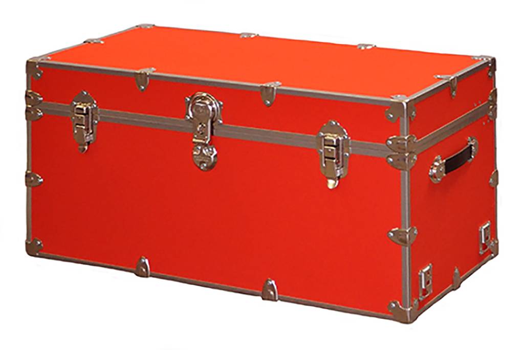 ed, chrome hardware, black leather handles, two wheels and two feet