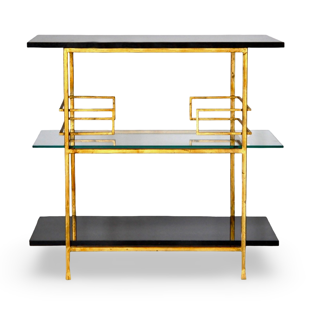 Entry table / bar table; 3 shelf (two black marble; one glass)